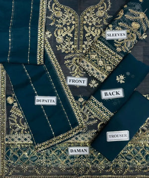 Chiffon embroidered & sequenced unstitched 3pc
